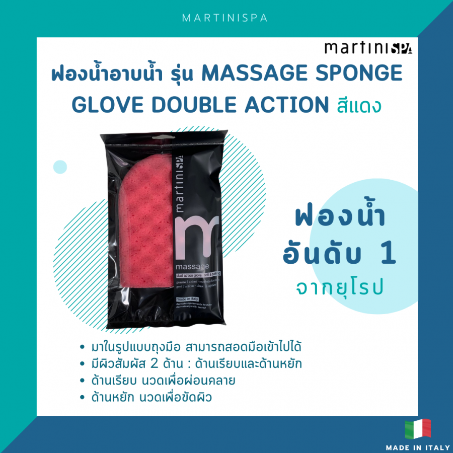 Massage Sponge Glove Double Action สีแดง (Italy)