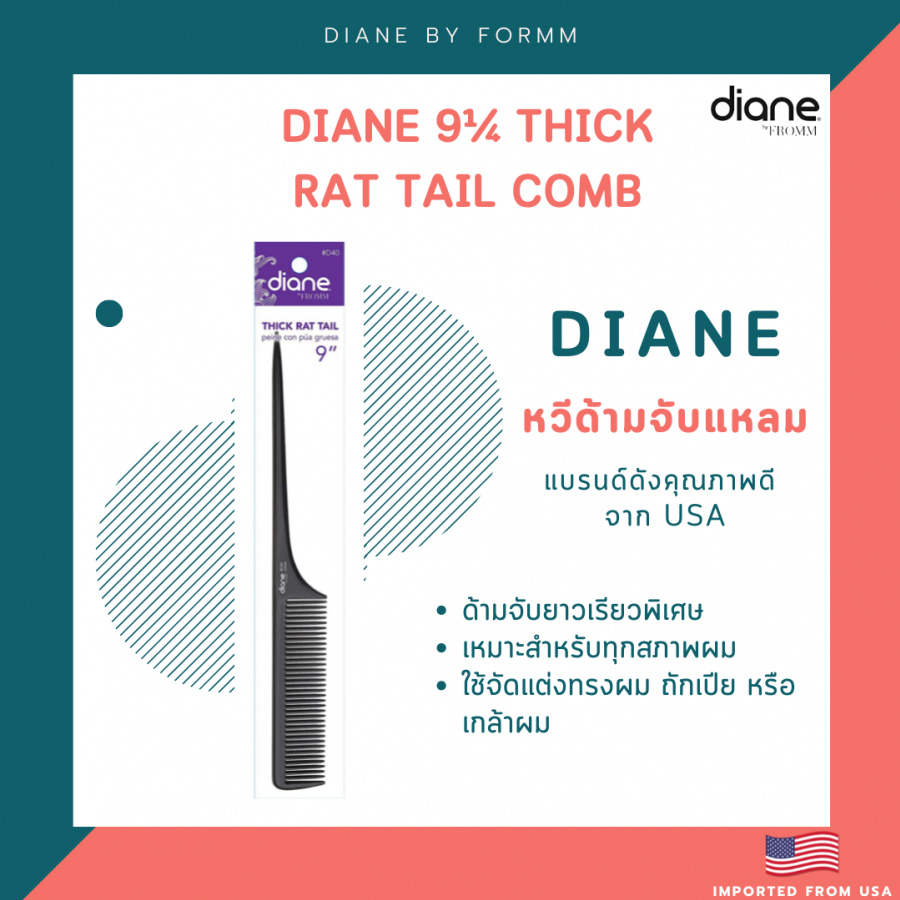 Diane 9¼ Thick Rat Tail Comb (Imported from USA)