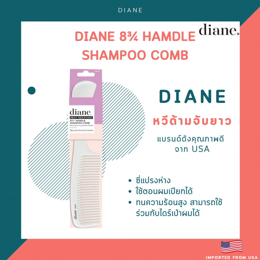 Diane 8¾ Handle Shampoo Comb (Imported from USA)